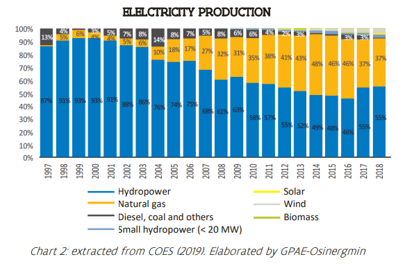 El sector privado ahora representa el 80% de la generación y es responsable de más del 50% de la distribución eléctrica. El Organismo Supervisor de la Inversión en Energía y Minería, OSINERGMIN, en un informe reciente, estipuló que solo una fracción de la capacidad energética potencial del país estaba siendo utilizada de manera óptima. Perú tiene potencial para cerca de 69,5 GW de capacidad hidroeléctrica, 25 GW de energía solar, 20,4 GW de parques eólicos, 2,85 GW de capacidad geotérmica y 450-900 MW de generación de biomasa, según su informe de 2019.